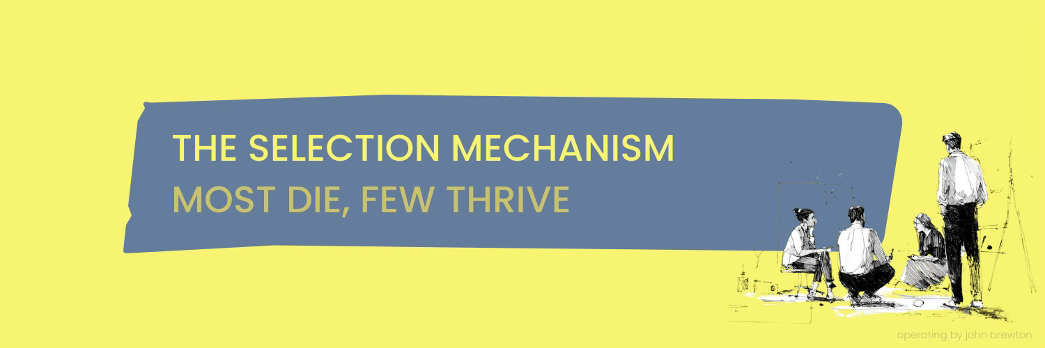 This maps perfectly to creator businesses. Most newsletters lose 90% of subscribers in Year 1. Most YouTube channels quit after fewer than 10 videos. The distribution is extreme not because of luck, but because of selection pressure.