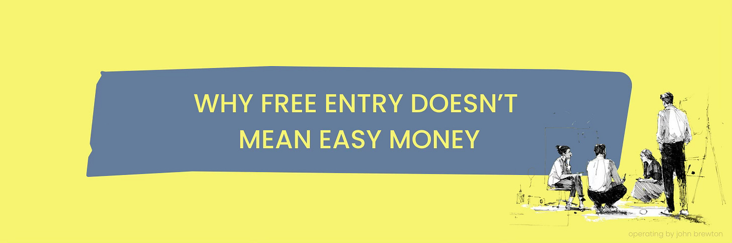 Foundation for understanding why low entry barriers create crowded markets