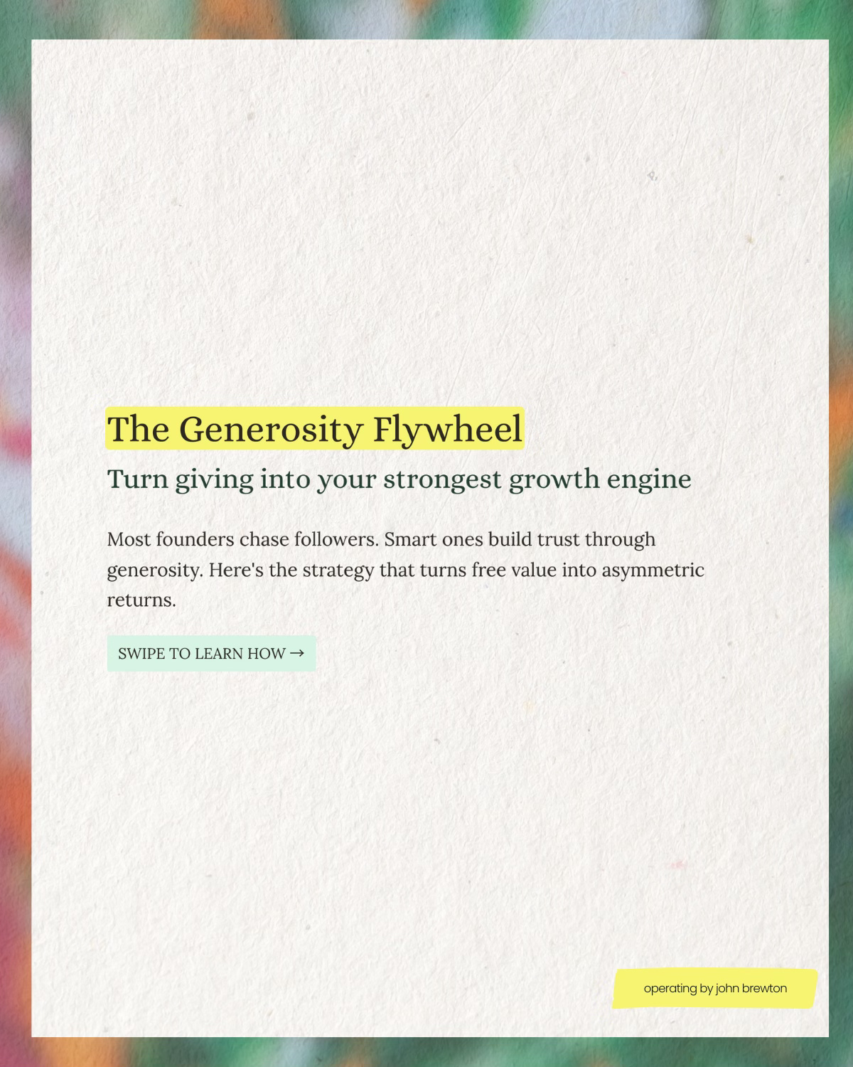 Generosity isn’t soft. It’s strategic. Opportunity is built on generosity and gratitude. And in a world where everyone is afraid, being generous is the most contrarian bet you can make.