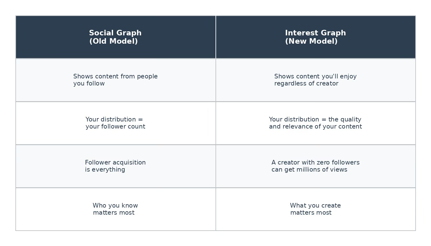 TikTok changed everything. They built a fundamentally different social engine with their algorithm, the Interest Graph.