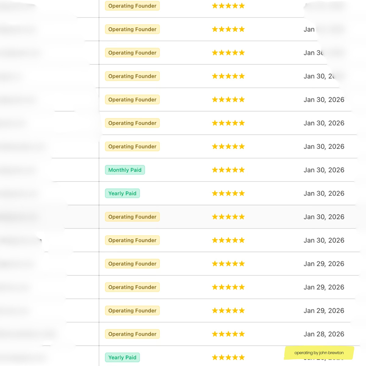 Become an Operating Founder ($99/yr) if you want direct access and to join our weekly one-hour Zoom sessions for the next year.