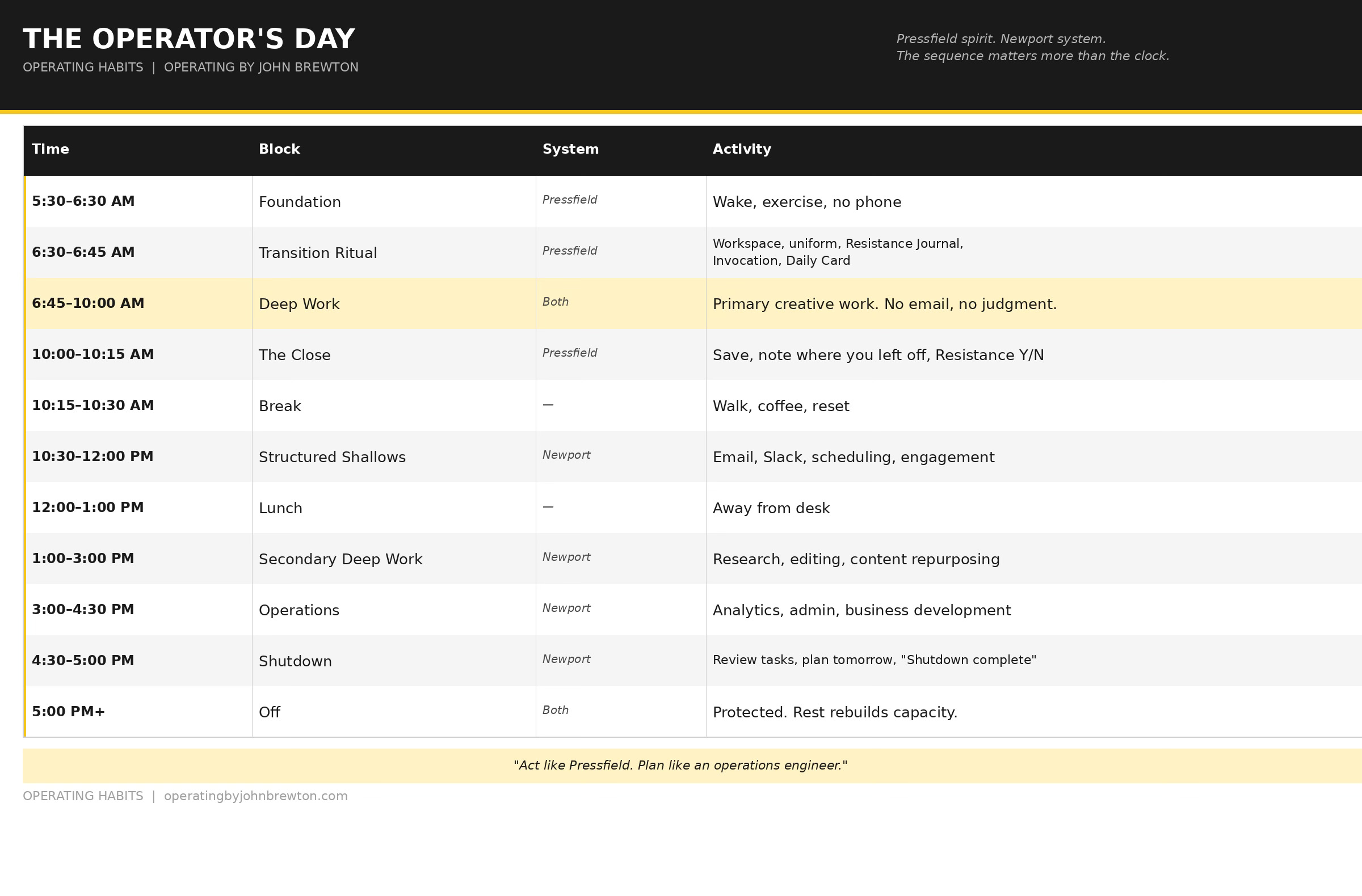 Most people don’t need more strategy, they need a system that makes showing up inevitable. Pressfield for the fight, Newport for the container.