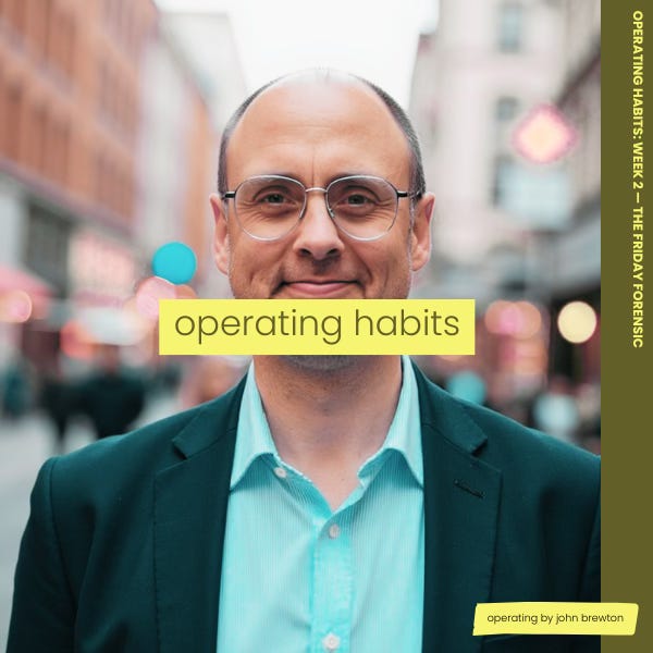 “I’ve run my first Friday Forensic. I’m killing ____, keeping ____, and doubling down on ____.”