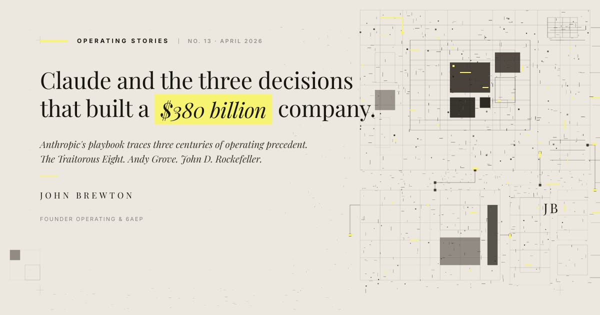 Anthropic's playbook traces three centuries of operating precedent. The Traitorous Eight. Andy Grove. John D. Rockefeller.