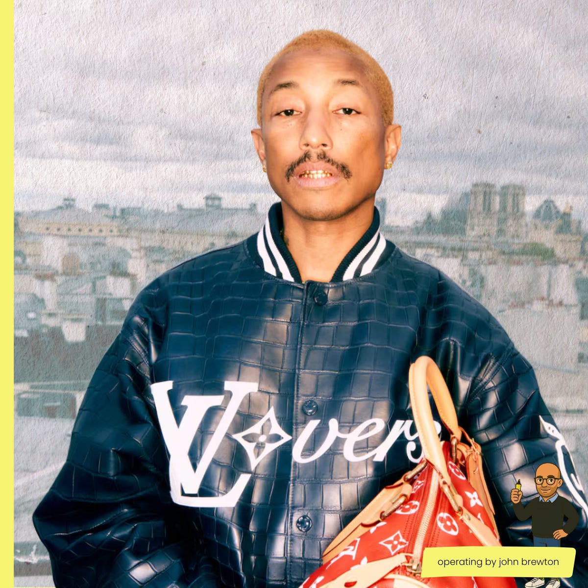 Pharrell’s deal with LV is structured differently from a traditional creative director role. He works roughly one-third of his time for the house, continuing his own music, brand partnerships, and ventures simultaneously. This was not a compromise — it was the strategy. LV was betting that Pharrell’s diverse network of relationships across music, entertainment, art, and business would function as a distribution channel for the brand.