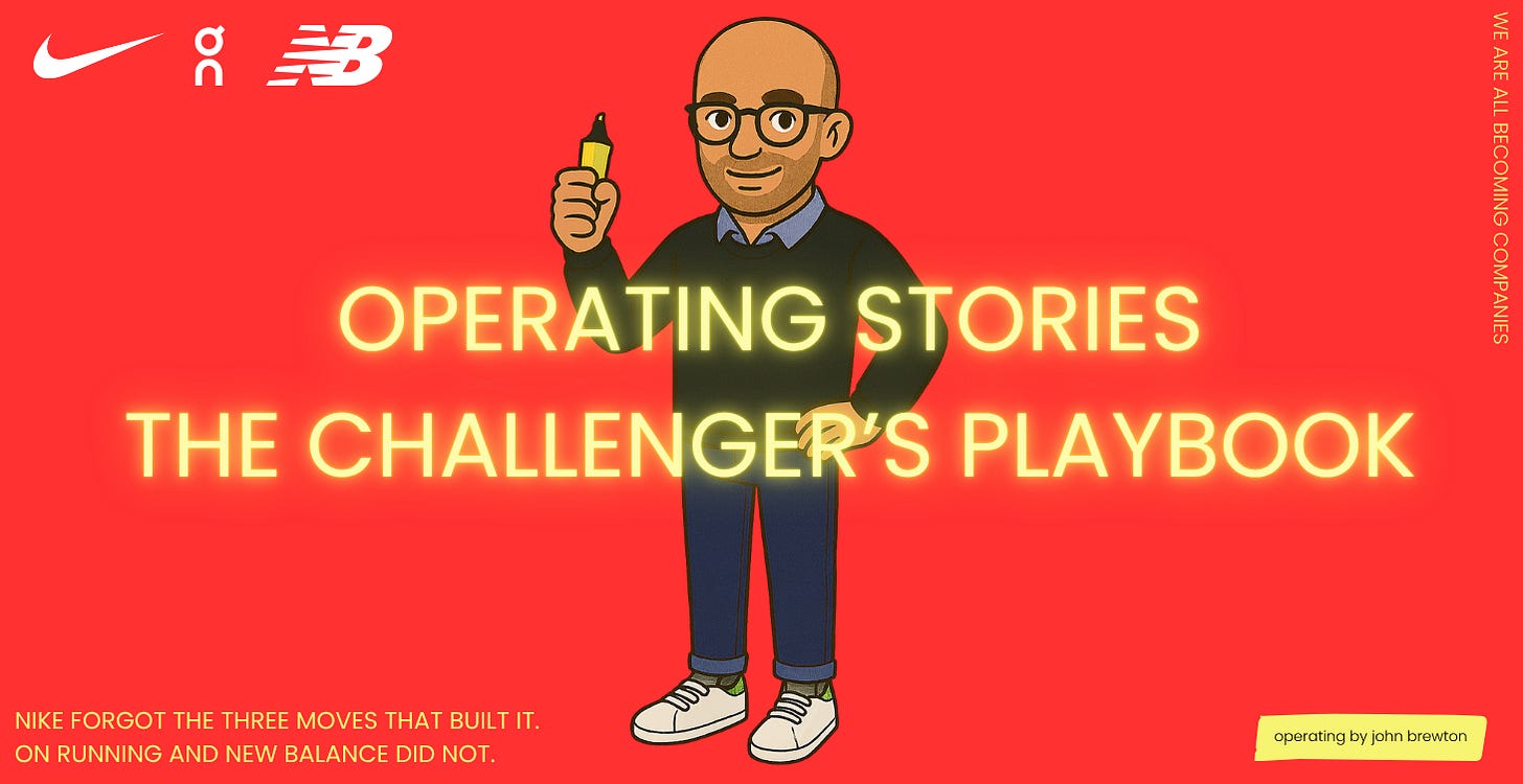 OPERATING STORIES: The Challenger’s Playbook - Nike forgot the three moves that built it. On Running and New Balance did not.