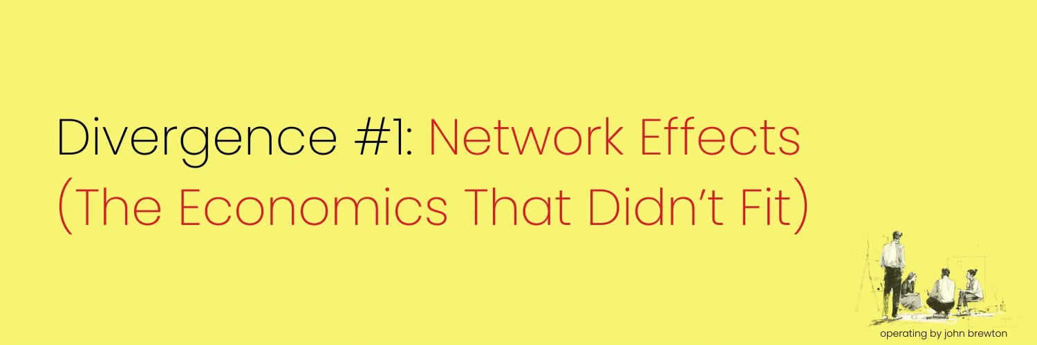 While transaction costs and scale economies aligned with classical theory, something stranger was happening with network effects.