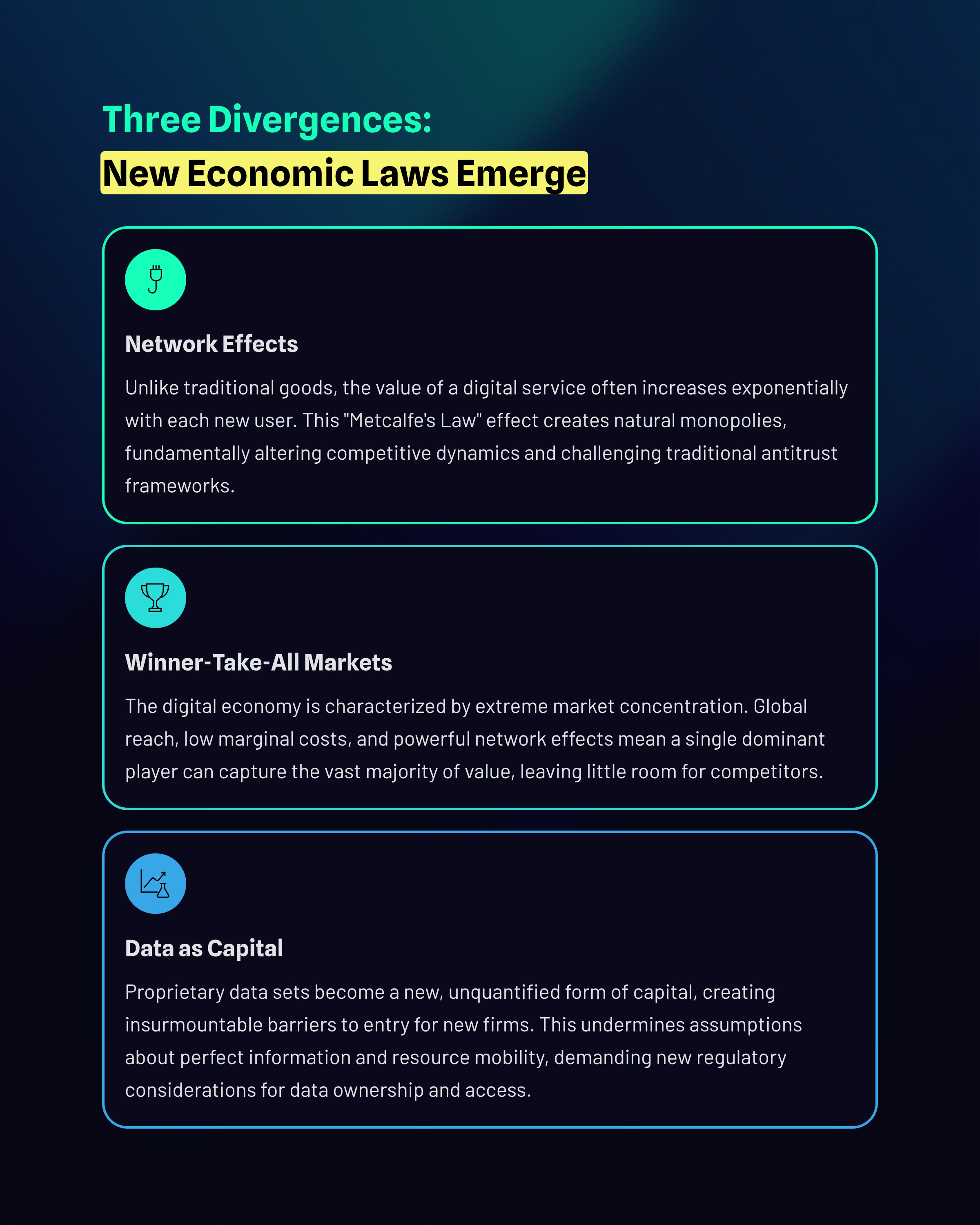 Economics didn’t stop evolving in 2025. Each technological wave—from Internet to mobile to AI—expanded what theory must explain. The convergences remind us that classical principles remain foundational. The divergences show that new phenomena require new frameworks.