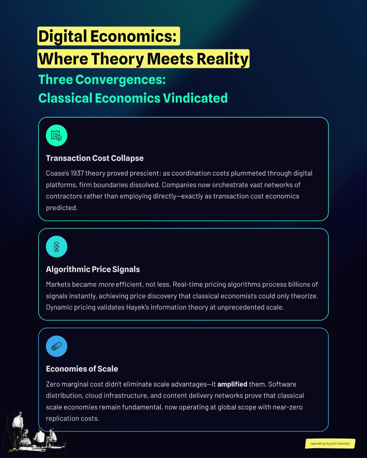 The past thirty years weren’t a contest between classical and platform economics. They demonstrated that economic theory is living practice, refined by reality: