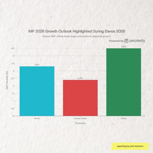 The macro message from Davos was not exuberance but durability. The IMF raised its 2026 global growth forecast to around 3.3%, up 0.2 percentage points from October, citing stronger investment in AI and digital infrastructure as a key offset to trade and policy headwinds. The United States was revised up to 2.4% growth, China to 4.5%, with the global figure anchored in the low‑3s