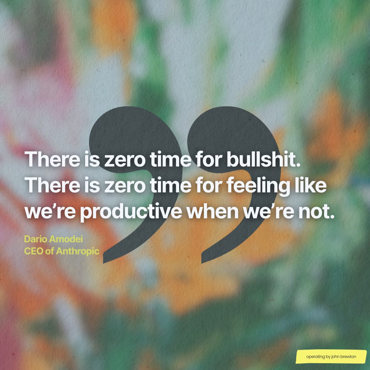 “There is zero time for bullshit. There is zero time for feeling like we’re productive when we’re not.” — Dario Amodei, CEO of Anthropic