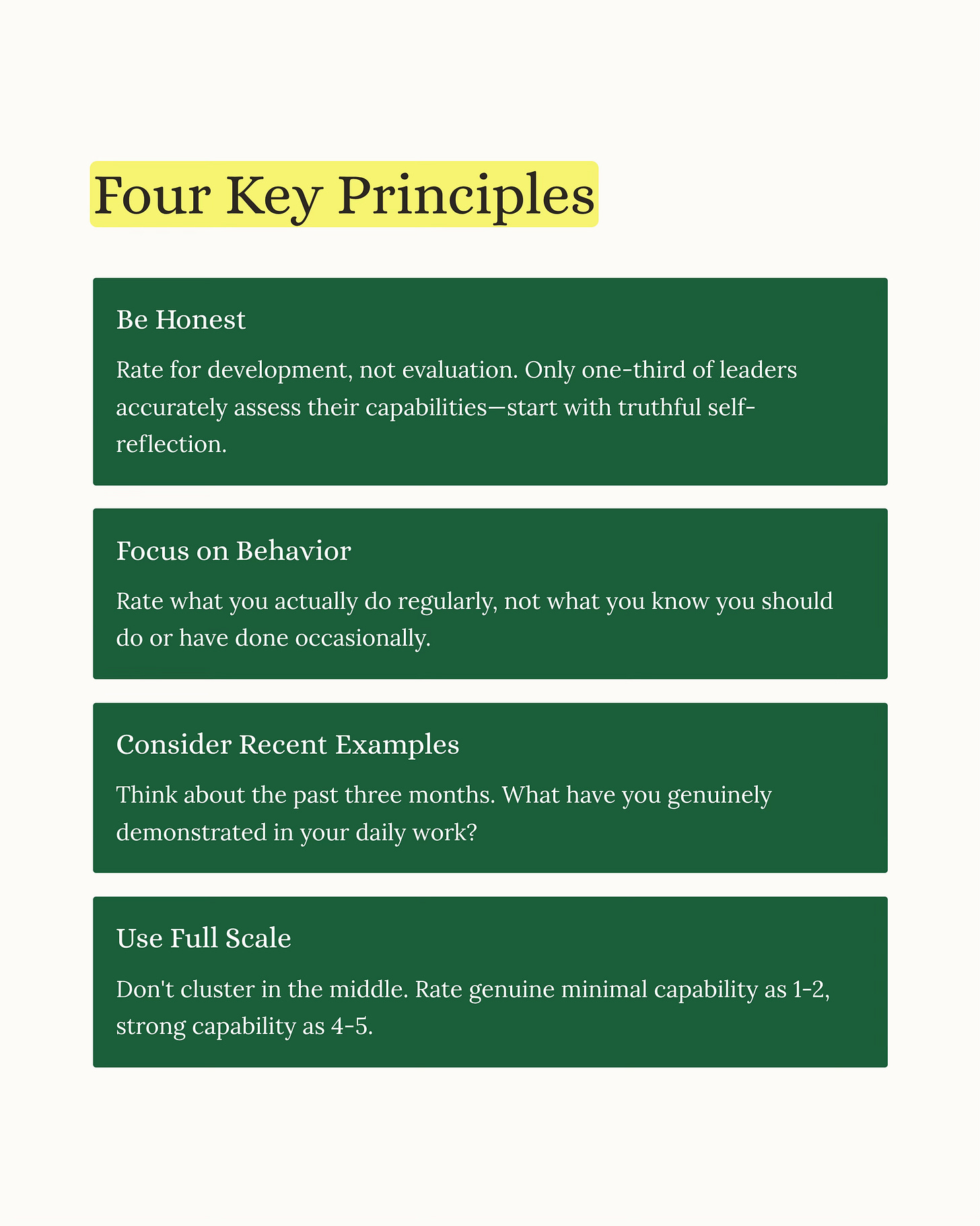 Wharton’s research on leadership assessment emphasizes that self-reflection combined with external perspectives produces the most accurate self-awareness.