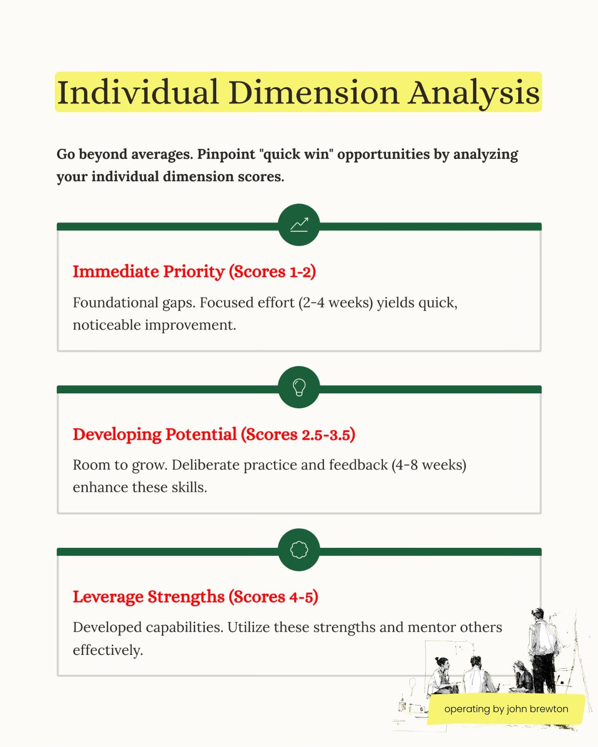 Where are you now across the three pillars? What are your current capabilities and gaps? What should you prioritize over the next 90 days? We’ll utilize a research-backed self-assessment framework based on behaviorally anchored rating scales, and developed in relatioships to how teams at Harvard Business School, Wharton, and leading consulting firms to objectively evaluate capabilities.