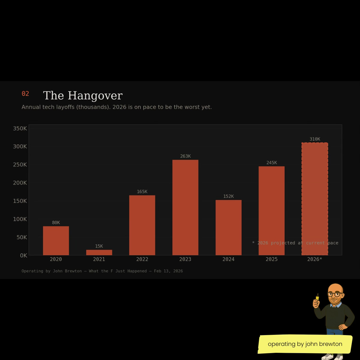 The headline: Amazon cut 16,000 in January. Meta trimmed 1,500. Salesforce dropped nearly 1,000. Total tech cuts globally: 30,700 by mid-February, on pace to blow past 2025’s 245,000.
